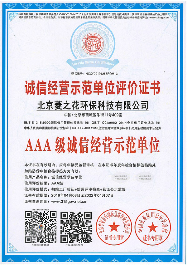 • 誠信經(jīng)營示范單位評價證書