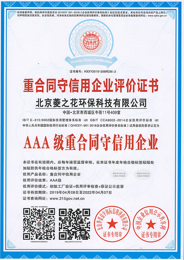 • 重合同守信用企業(yè)評價證書